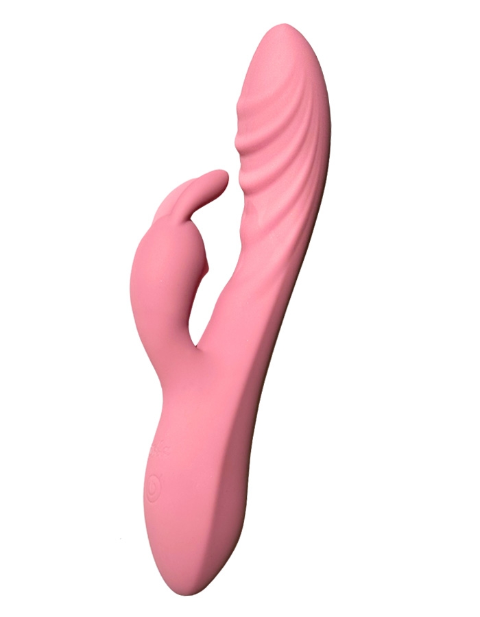 Гибкий розовый вибростимулятор с удивительно пылким нравом для одновременной двойной стимуляции!